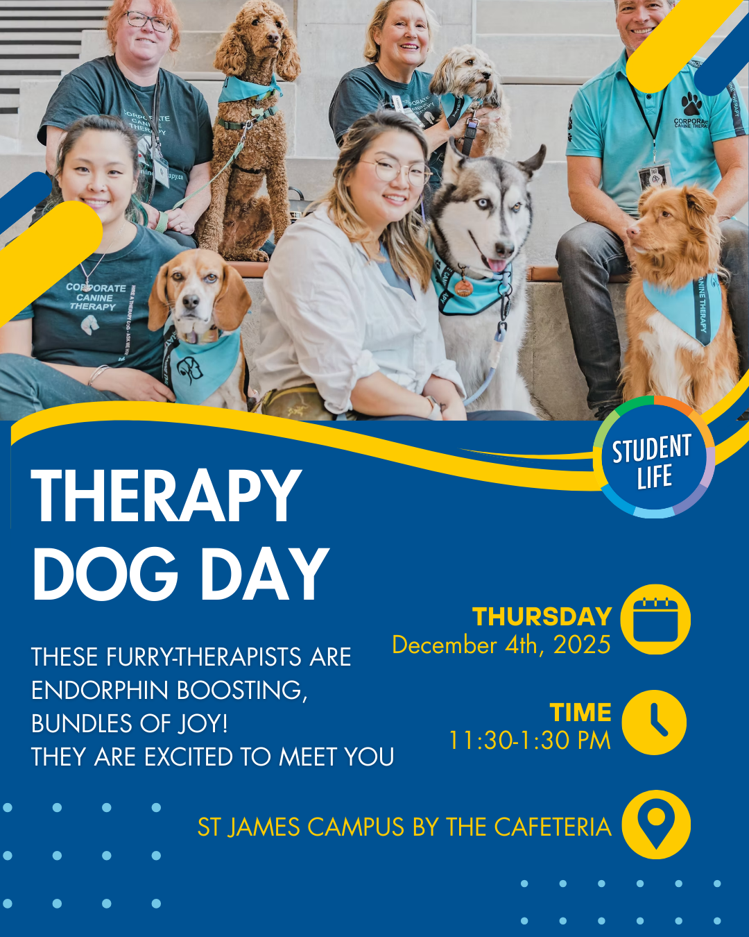 We are looking for 2 people to assist with Therapy Dog event, which will have free Coffee / Tea and Timbits.